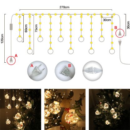Содржина на пакетот: ланец од 10 LED топки (дијаметар на светлата: 8 cm)