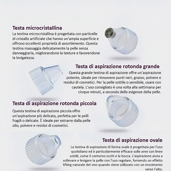 Не само што ги чисти порите, туку и ја освежува кожата, стимулирајќи ја циркулацијата и нежно ги намалува тенките линии. Нежното вакуумирање масира мускулите на лицето, оставајќи ја кожата освежена и сјајна по секое користење.