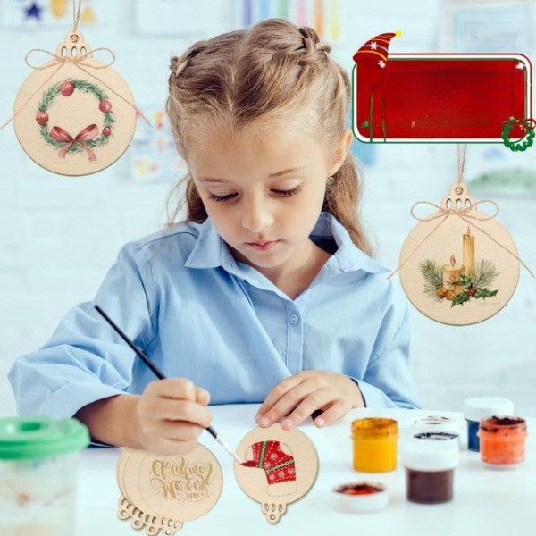 Трансформирајте го вашиот божиќен декор со 30 предбушени дрвени дискови од прва класа, совршени за создавање персонализирани украси кои додаваат рустичен шарм на вашата елка.