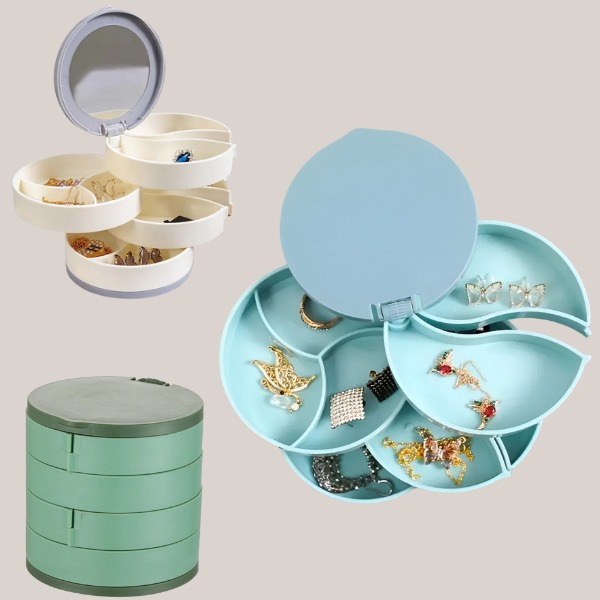 Вртете го куферот за накит на 360° за веднаш да ги најдете накитот што ви е потребен, без потреба повеќе да копате по гомили или фиоки.