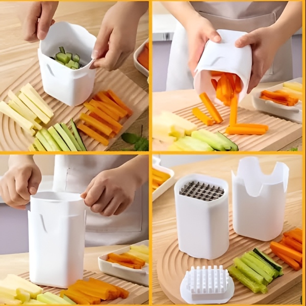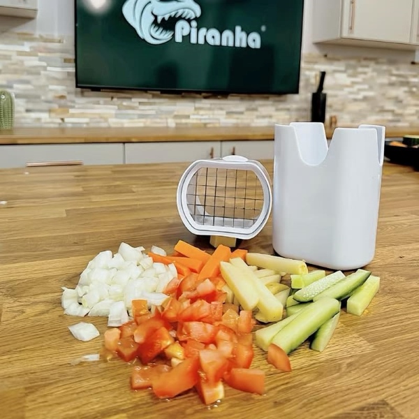 Кујнската алатка CHOPZY не е само за помфрит; таа е универзален сечкач за зеленчук кој лесно обработува состојки како моркови, краставици и кромид, правејќи ја подготовката на оброци многу полесна.