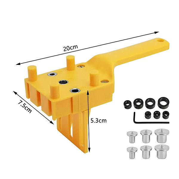 Овој уред поддржува дупчалки од 6, 8 и 10 mm и работи на дрво и иверица до 30 mm дебелина, што го прави идеален за широк спектар на проекти, од столарија до асемблирање на домашни мебели. Неговиот лесен и управлив дизајн овозможува лесно ракување, без разлика дали станува збор за градежни работи или столарија.