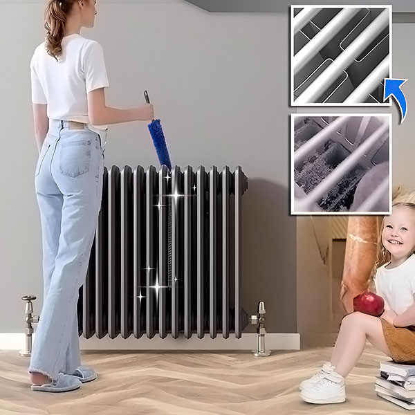 Не е потребно отстранување на решетките на радијаторите. DUSTOFF е специјално направен за чистење на радијатори. Неговата електростатичка наелектризираност привлекува прашина и нечистотија, што го прави идеален за радијатори со панели, колони, ребра, скали и за сушење пешкири.